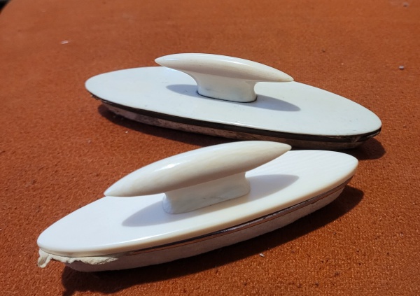 • Dois mata-borrões em marfim, Europa, século XIX. Med.: 13 e 11cm