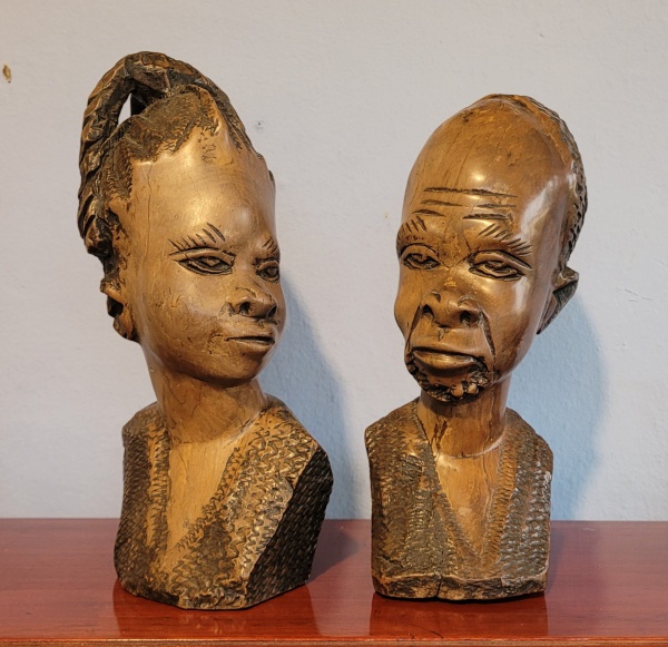 • Par de belos e raros bustos, casal (África, século XIX) esculpido em madeira maçiça, robustas e pesadas. Med.: