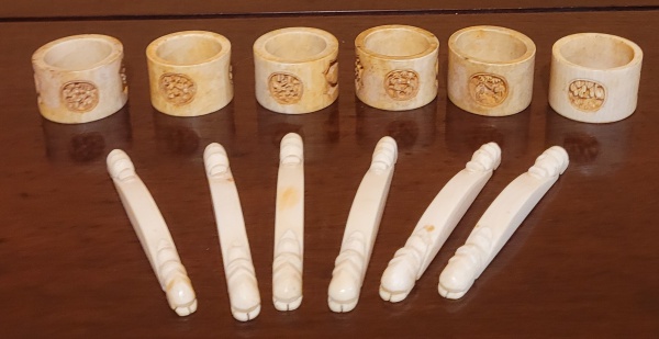 • Conjunto de 12 peças em marfim sendo seis descansos de talheres e seis porta guardanapos.