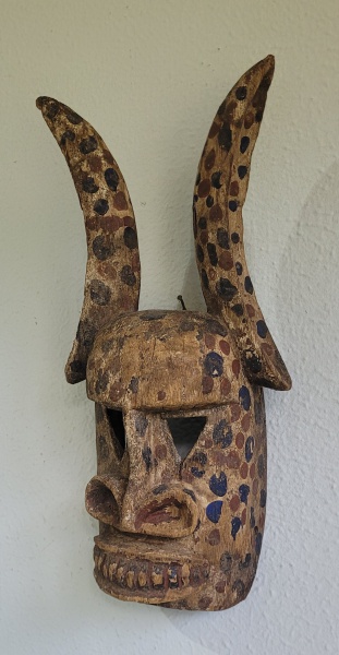 • Arte africana, Dogon do Mali - Rara Máscara de cerimonial esculpida em madeira policromada. Med.: 46 x 21cm.