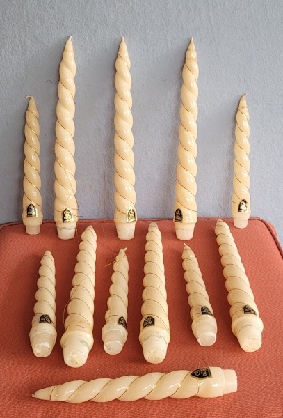 • Doze velas de cera da marca Glimm sendo 6 25cm e seis 18cm, sem uso.
