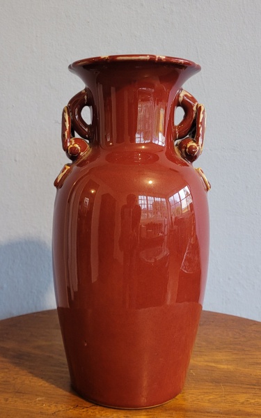 • Floreira oriental em cerâmica esmaltada vermelha dita "sangue de boi". Med.: 30x 14cm
