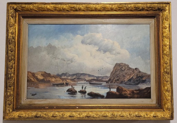 • WALDIR GOMES ost ""Lago com pescadores"" . A tela: 48x78, datado e assinado em 1988