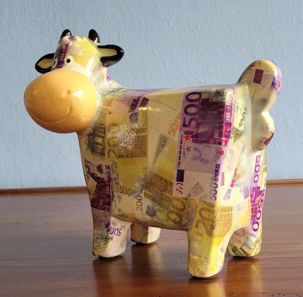 • Escultura em cerâmica policromada dita "Boi da fortuna", medindo 16x18cm
