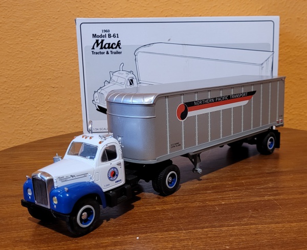 • first Gear Mack Tractor & Trailer B-16 1960 Northern Pacific Railroad metal fundido. Conservado na embalagem, original. 42cm