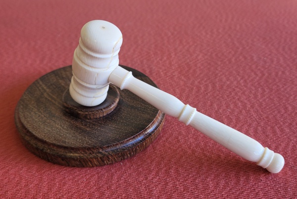 • Martelo de leiloeiro em marfim com a base em madeira. Med.: 12cm