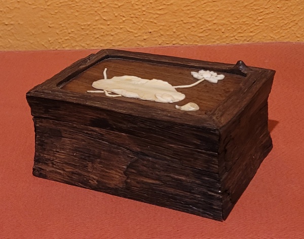 • Caixa de charutos muito antiga em ébano, tampa decorada com madrepérola. Med.: 16x11x7cm