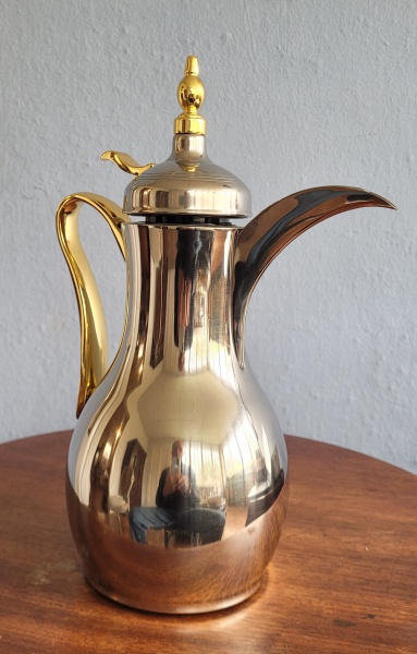 • Chocolateira  térmica em metal prateado, interior em vidro. Med.: 34cm 1L.
