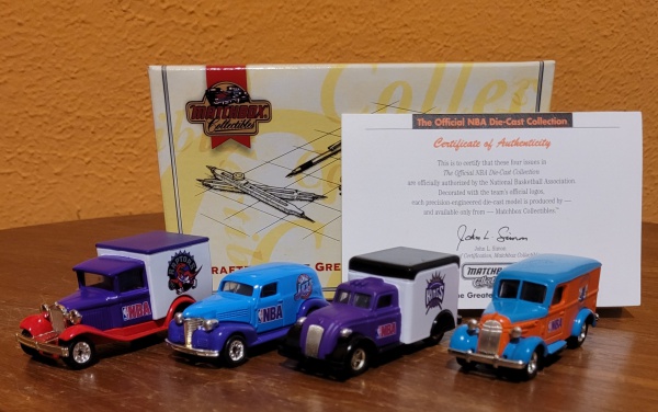 • MATCHBOX scala 1/63 - YYM36912 Caixa com quatro miniaturas  "Jazz, Kings, Hornets, Raptors". conservados na embalagem original, perfeitos.