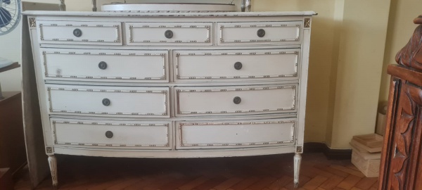 • Comoda antiga em madeira nobre estilo Luis XVI com nove gavetas. Med.: 95x144x59cm, em excelente estado. Deverá ser retirado no bairro da Tijuca, Rio de Janeiro com agendamento.