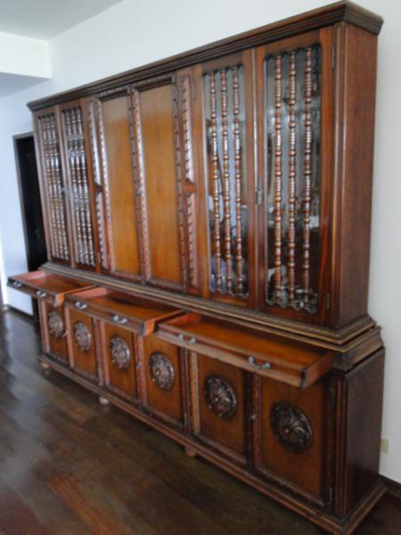 • Estante antiga em madeira nobre em excelente estado de conservação, com quatro portas (vitrines) envidraçadas na parte superior, três gavetões e seis portas na parte inferior com prateleiras internas. Med.: 3,00m Compr x 2,30 Alt. x 0,45cm Prof. Deverá ser retirado no bairo da Tijuca, Riio de Janeiro, com agendamento.
