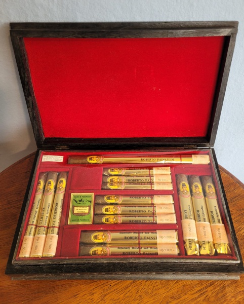 • Taru Martani Yogyakarta, Indonésia - Caixa em madeira contendo diversos tipos de charutos, personalizado em homenagem ao engenheiro, professor e pesquisador, Dr. Roberto Fainstain.