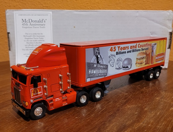 • MATCHBOX DYM38314 MCDONALD'S 45 Anniversary Tractor Trailer 28cm. Conservado na embalagem de isopor original 28cm,