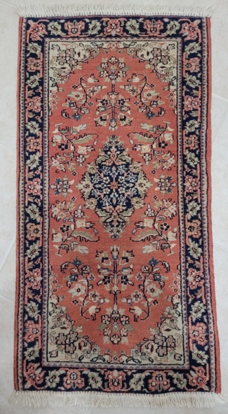 • Tapete persa feito iraniano, antigo - Med.: 0,58cm x 1,05m em excelente estado de conservação, limpo.