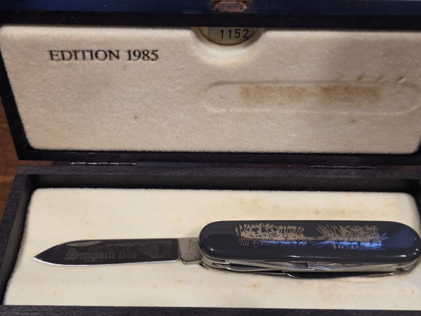 • Raríssimo canivete de coleção Victorinox edição especial limitada de 1985 BATTLE OF SEMPACH 1936 numerado. Conservado no estojo original com manuais, em perfeito estado, impecável.