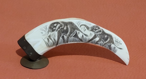 • Presa esculpida e esmaltada, guarnições em metal, pintadas com figuras de elefantes. Med.: 16cm x 7,5cm.