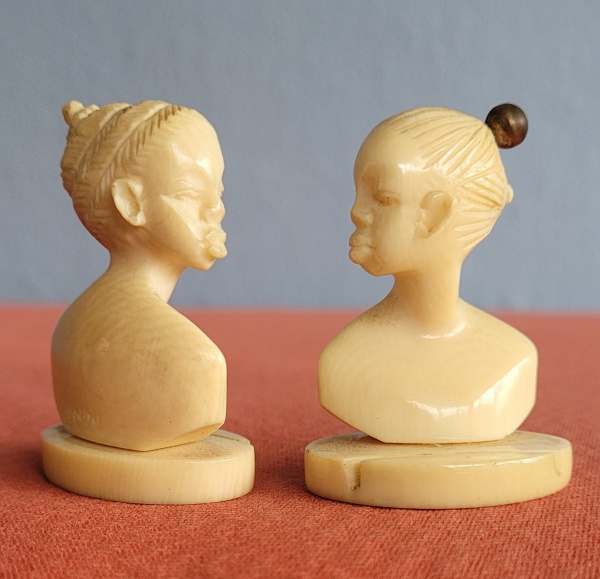 • Par de bustos esculpidos em marfim (África, século XIX). Med.:5x4cm