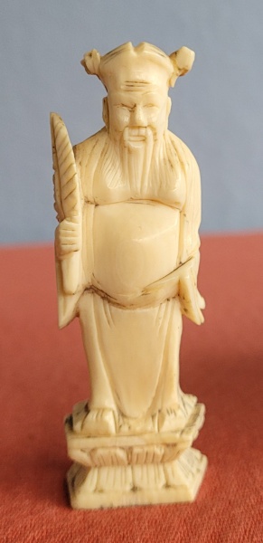 • Escultura em marfim esmaltado do século XIX representando sábio. Med.: 12,5cm
