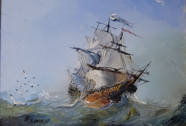 • Roberto Cohen óleo sobre tela "Caravelas". A tela: 22x16, década de 1990.