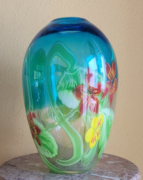 • Vaso em murano multicolorido dos anoa de 1960. Med.:: 33x20cm