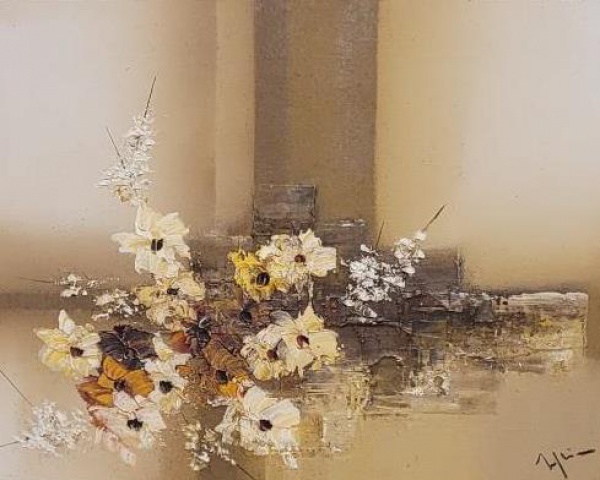 • MYRIAN BEDEIROS óleo sobre tela "Flores brancas" 30x40cm. década de 1980.