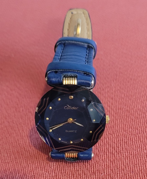 • Relógio japonês CONDOR LAPIS LAZULI, belo designer oitavado, bateria, pulseira de couro, funcionando. Todo original (Japão), em excelente estado, recentemente revisado.