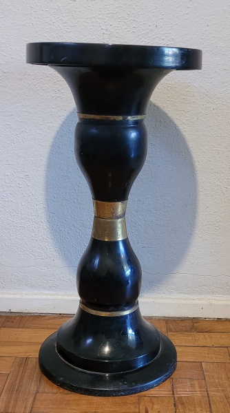 • Coluna expositora em madeira laqueada e detalhes dourados. Med.: 65x32cm