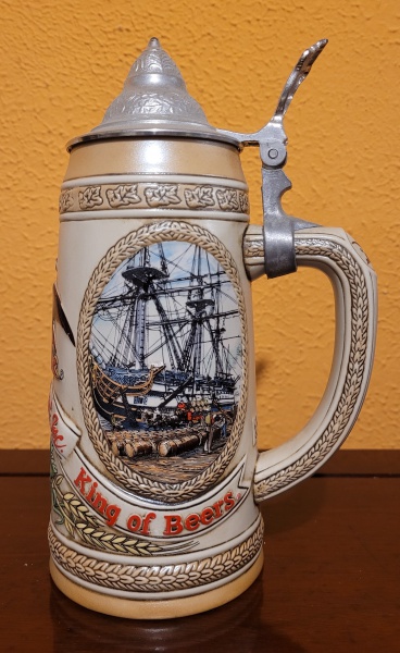 • Raro tankard Budweiser Lidded Stein CS373 Opera Card Series 1997- "Siegfried" tampa em piwter. Em perfeito estado. Med.: 24cm