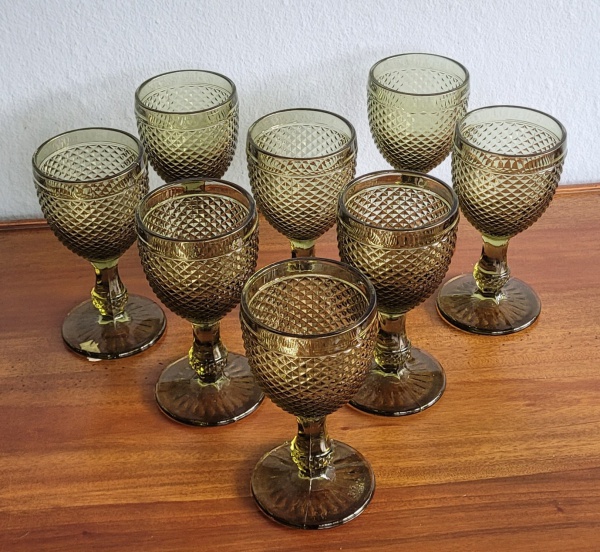 • Oito taças para água em vidro bico estilo dos anos 1960, verde.