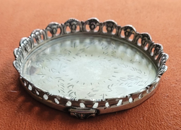 • PRATA - Salva em prata brasileira (aneleira). século XIX, borda com galeria vazada. Med:17cm. Peso: 74g