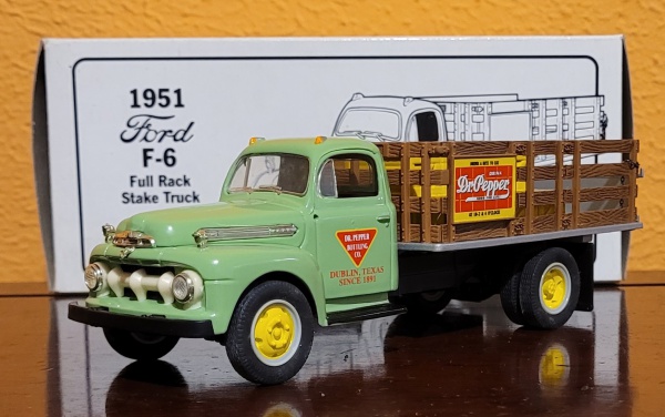 • First Gear (Raro) 1:34 1951 Ford F-6 Full Stake Truck: Dr. Pepper, metal fundido, conservado na embalagem original, perfeito. 20cm