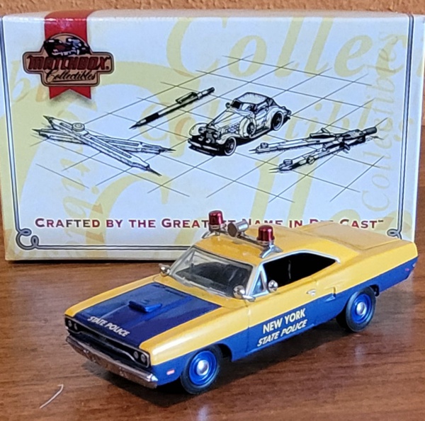 • Matchbox DYM96664 1/43 Plymouth 1970 Road Runner New York State Police, metal fundido, conservado na embalagem original, perfeito.