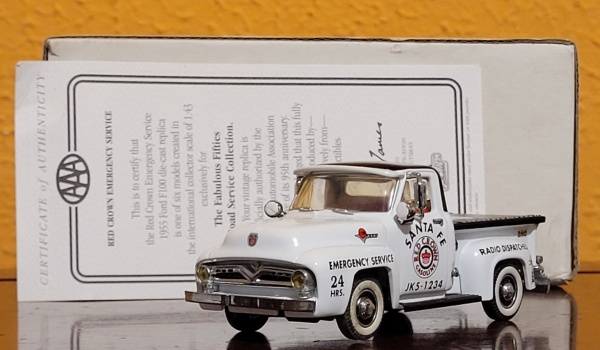• Matchbox YRS06-M 1955 Ford F-100 Pickup Truck Road Service EUA Rt 66-m 1/43, metal fundido. Na embalagem original.